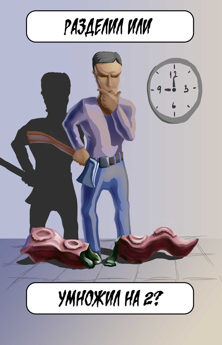 Все знают, что умножение -- это множественное сложение, а деление -- это множественное вычитание. Однако в реальном мире эти операции иногда можно путать. В некоторых случаях достаточно сложно понять, что же конкретно ты сделал: Операция деления предполагает, что ты что-то вычел, какое-то свойство объекта улетучилось. В случае с кошмарной щупальцей, если оно тебя не преследует, то некоторые жизненные функции ты все-таки вычел. Но если тебя вдруг преследует обе части кошмарной щупальцы, то получается... Или где-то тут закралась ошибка или двусмысленность?