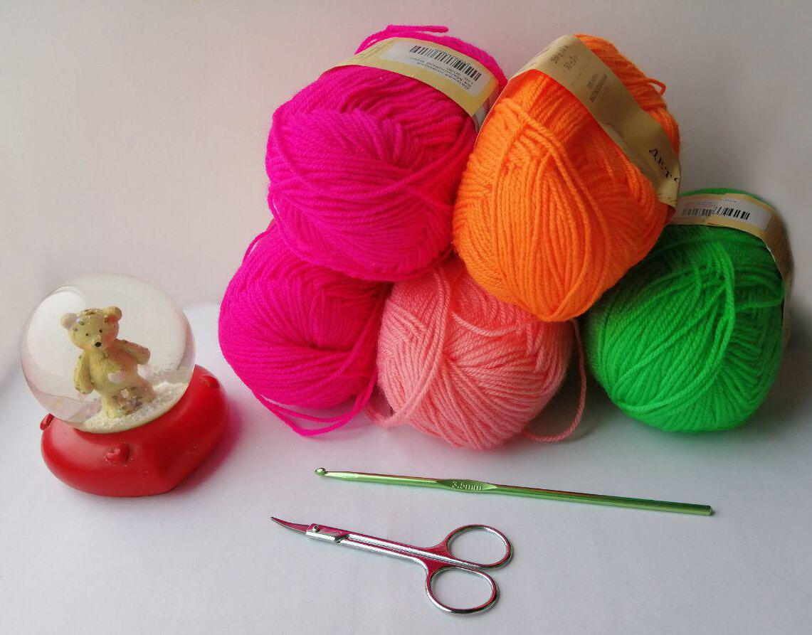 Привет-привет! Я снова на связи :) Уже закупилась моточками для своей идейки (точнее запроса крестницы). Вот она, моя прелесть: Рассказываю, что задумала :) Если помните, то в предыдущем посте говорила, что буду вязать мультяшного совенка. Так вот, первым этапом было важно определить какие цвета нужны. Особых проблем это не составила, ведь все видно невооруженным глазом: малиновое тело, розовенькое пузико, зеленые крылышки и оранжевые лапки. Легко! Конечно, определиться с пряжей тоже важно, но я решила это не задумываясь - "Детская новинка" то что нужно! По моему мнению, отличный вариант для игрушек, т.к. она достаточно бюджетная, хорошей толщины и самое главное - гипоаллергенна. Но передо мной возникла еще одна проблема. Правда, как оказалось, она только в моей голове. Напомню, что я живу в небольшом городе и магазинов для рукодельниц не так много. А "проблема" состояла в том, что я боялась не найти там нужных мне цветов. Но (о счастье!) я нашла все, что мне нужно. Вязать буду в 2