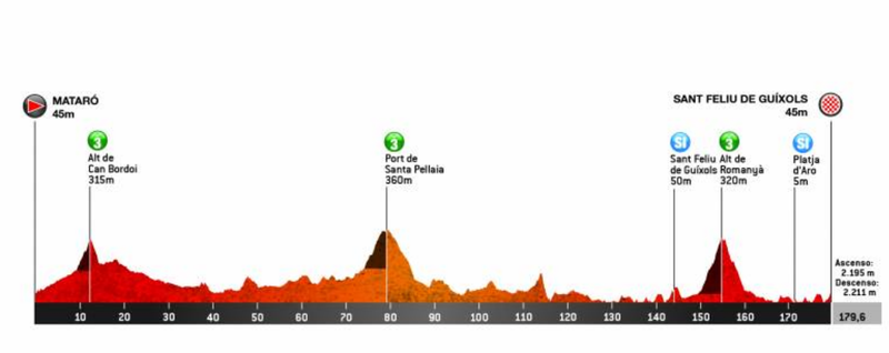 Второй этап Вуэльты Каталонии - 2019 стартовал в городке Mataro, чтобы спустя 167 километров финишировать в Saint Feliu de Guixols. Этап был предназначен для спринтеров, умеющих преодолевать небольшие холмы и финишировать в пригорки. На маршруте находилось три подъема третьей категории, последний из которых - приблизительно за 20 километров до финиша. В начале гонки сформировался отрыв из трех гонщиков, чье максимально преимущество достигало 7 минут, однако пелотон не хотел повторять сценарий первого этапа и уверенно контролировал беглецов. Их преимущество начало сокращаться, начиная со старта второй половины дистанции и окончательно было ликвидировано за 25 километров до финиша. Десятью километрами ранее - за 35 километров до финиша в завал попал Крис Фрум (Sky) вместе с двумя гонщиками Bora-Hansgrohe. Авария потребовала замены велосипеда, из-за чего британец потерял около полутора минут. Фрум получил заметные повреждения, однако сумел продолжить гонку. Оценив состояние