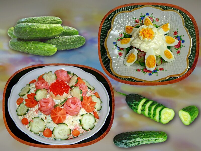 Существует огромное количество рецептов салатов со свежими огурцами. Поделюсь теми, которые мне нравятся. Первый совсем несложный, из доступных ингредиентов. Второй подороже, больше подойдёт для праздничного стола. Для приготовления использовались мультиварки, но это совсем необязательно.