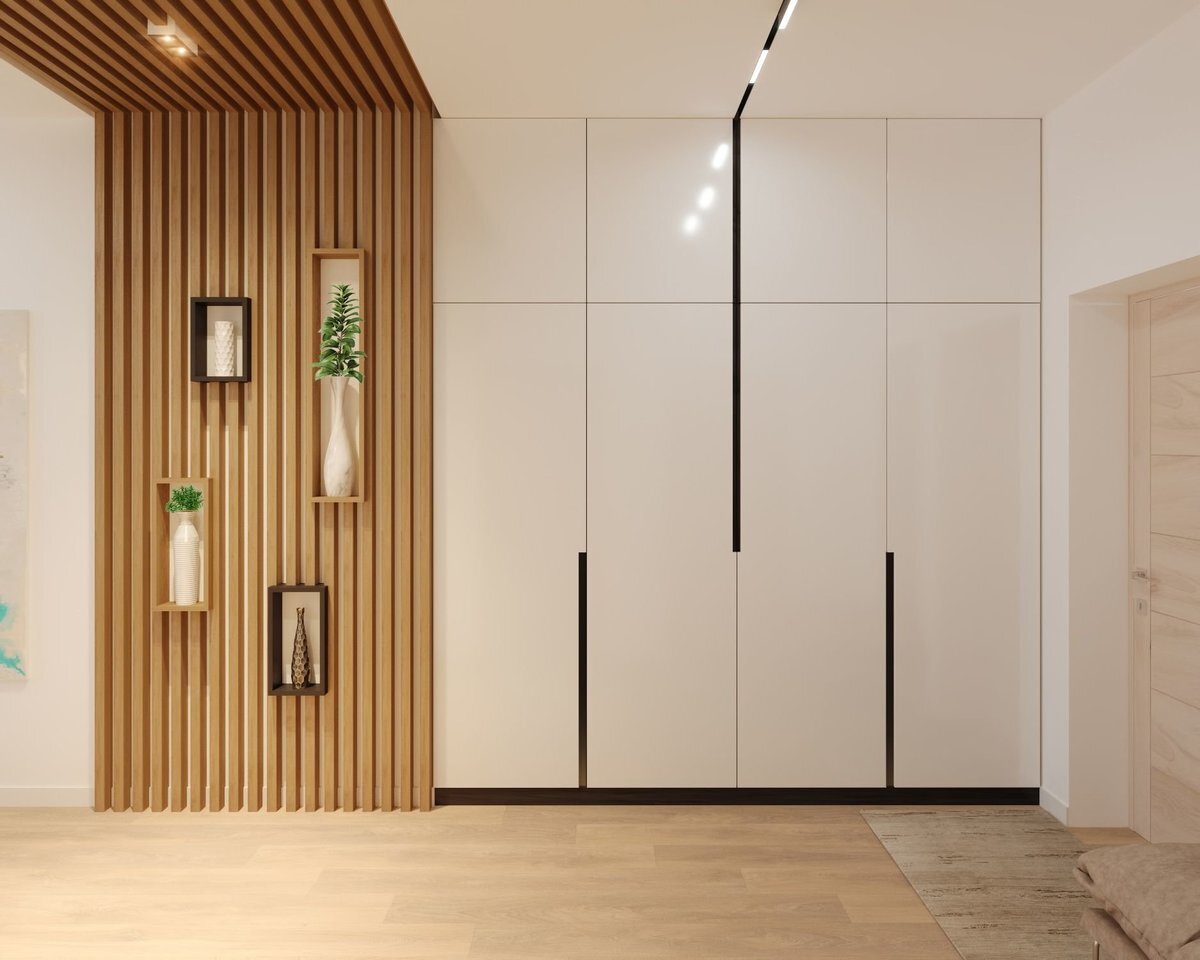 Сейчас наблюдается настоящий бум на применение деревянных реек в интерьере. Какие могут дать советы от себя Выбираем рейки постарайтесь найти максимально гладкие рейки без сучков, древесина реек должна быть идеально просушена, ведь иначе их может повести со временем и всё придётся переделывать. Как вариант — использовать рейки из ЛДСП с ламинацией под натуральную древесину. С ними точно ничего не случится, хотя имитацию, конечно, можно будет распознать. если доска кривая (а она ссохнется после покраски и станет кривая с вероятностью 50%), необходимо сделать надпилы по всей ее длине, тогда она станет слушаться. Склейка рейки если размер рейки меньше высоты потолков в квартире, рейки необходимо склеить. Покраска рейки Подобрать идеальный цвет для рейки несложно. В зависимости от вида дерева, краска впитывается по-разному. Советую сделать несколько предварительных вариантов, попробовать различные колеры и выбрать самый лучший вариант. Монтаж рейки для крепления рейки мы используем д