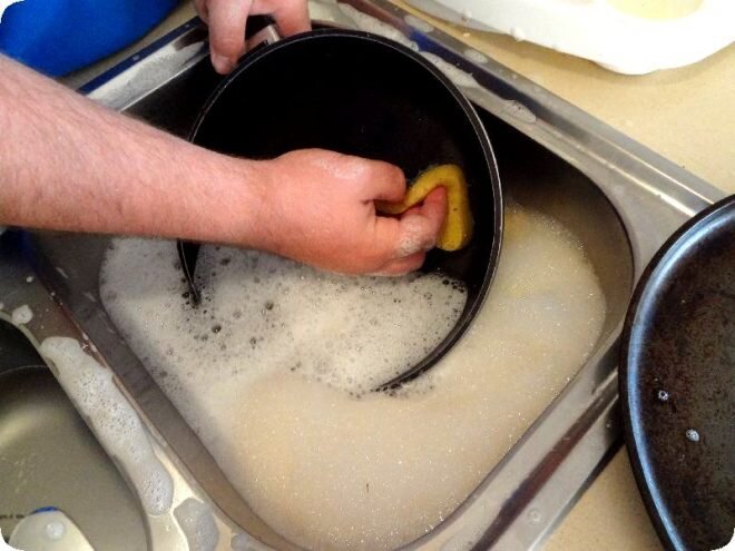 Эффективные методы очистки Чтобы избавиться от грязи, можно воспользоваться разными способами, но наиболее эффективными являются следующие: Средство для мытья духовок, полиэтилен. На сковороду необходимо нанести средство и обернуть ее в полиэтиленовую пленку. Посуду стоит убрать в сторону на 24 часа. После этого достаточно удалить жир обычной губкой и промыть средством для мытья посуды. Прокаливание. Провести процедуру можно на плите, в духовке, на костре, заранее засыпав в посуду песок или соль. Затем нужно сковороду постукать об стол и снять грязь металлической губкой. Шлифовка. Если интересует вопрос, как очистить сковородку от нагара и жира за 5 минут, стоит восполь