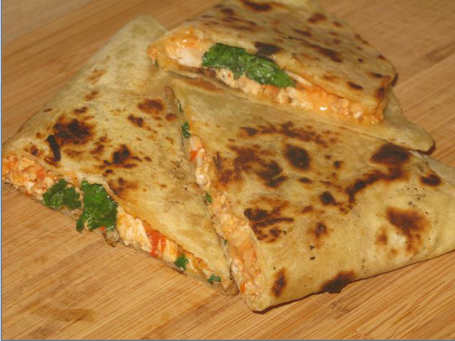 Кесадилья (Quesadilla) - мексиканское блюдо из тортильи, заполненное начинкой и обжаренное на сковороде. На 3 кесадильи: 3 лепешки тортилья 250 гр. куриного филе 1 ст.л. соуса шрирача 1 ст.л. сметаны 100 гр. натертого чеддера 1/4 чашки кинзы Начинаем готовить. Куриное филе пожарить или отварить,разобрать на волокна. Смешать курицу, соус, сметану, сыр. Сборка. На одну половину лепешки выложить куриную начинку, посыпать нарезанной кинзой. Накрыть второй половиной. Обжарка. Обжарить на сковороде с двух сторон, пока сыр не расплавится. Каждую кесадилью разрезать на 2 части и сразу подавать. Вкусно и быстро. Если вам понравился рецепт, ставьте лайк, оставляйте комментарии и не забывайте подписываться на мой канал. _________________________________________________________________________________________ На этом канале выкладываются рецепты мирового фаст-фуда и различной несложной выпечки, взятых из меню международных ресторанов и закусочных, а также авторские рецепты.