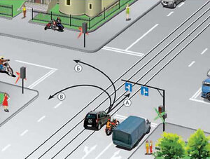 В каком из показанных направлений разрешено движение? Варианты ответов: а) во всех б) А в) Б или В г) Б д) В е) ни в каком Правильный ответ указан в конце статьи. Подумайте, прежде чем его смотреть. ГЛАВА МАНЕВРИРОВАНИЕ Перестроение транспортных средств на перекрестке запрещается, КРОМЕ перекрестка, на котором организовано круговое движение. ПРИЛОЖЕНИЕ ДОРОЖНАЯ РАЗМЕТКА ГЛАВА ГОРИЗОНТАЛЬНАЯ ДОРОЖНАЯ РАЗМЕТКА Линии разметки разрешается пересекать с любой стороны, КРОМЕ перекрестков, на которых НЕ организовано круговое движение Поскольку на перекрестке установлены знаки 5.15.2 и нанесена разметка 1.18, указывающие направления движения по полосам, движение легкового автомобиля через перекресток по трамвайным путям запрещено (пункт 9.6 Правил). Ответ: ни в одном (е) Узнал для себя новое и интересное - ставь лайк и подписывайся на канал!
