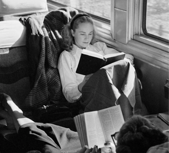 В каком месте нам читается лучше всего? Я всегда беру несколько книг в дорогу, стараюсь выбирать легкие, в мягких переплетах. Одну — в ручную кладь. Но из путешествия в путешествие понимаю, что зря. Мне в самолете совсем не читается. Писать — да, а читать, ну, никак. Слишком часто отвлекают сообщения бортпроводников, потом все едят, а когда наступает долгожданная тишина и все засыпают, то в темноте и только под направленный свет, читать уже не хочется. Вот другое дело в поездах, трамваях и метро. И людей много вокруг, и разговоров, а вот все равно читается. Наверное помогает ритмичный стук колес, да и дорога без ухабин, прямо скажем. Помню, в детстве я часто ездила с бабушкой в поездах. Какое это было счастье забраться на верхнюю полку и читать под мерное покачивание поезда. Потом засыпать, а потом снова браться за книжку. Сколько же книг было перечитано в поездах! Есть люди книгочеи или книголюбы (как кому нравится), которые могут читать везде. В очередях, в шумном кафе, даже в пл