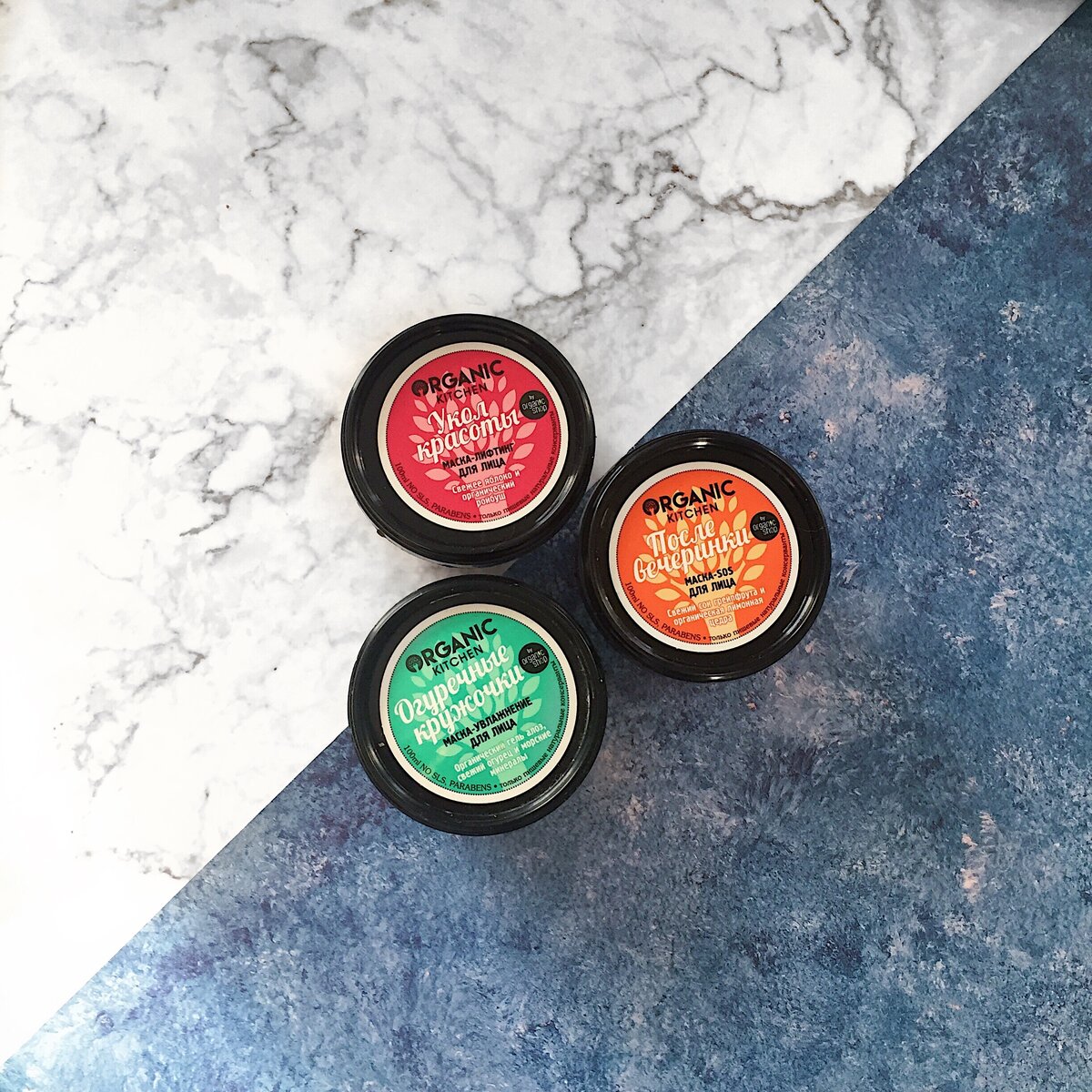 Обожаю эти милые баночки от Organic kitchen! А Вы? Пишите в комментариях свои любимые средства. О своей коже: 23 года, комбинированная, не проблемная, расширенные поры. Маски купила, не читав отзывов в интернете.. попалась на названия :) Лайфхак: все три маски имеют гелевую текстуру, если хранить их в холодильнике они будут работать намного эффективнее! 1) "После вечеринки". Must-have для тех, у кого отёки по утрам. Пахнет сочным грейпфрутом. Лучше наносить слой потолще, иначе быстро впитывается. Эффект: