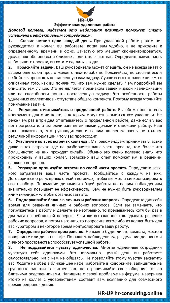 Неделю назад мы закончили ͟и͟с͟с͟л͟е͟д͟о͟в͟а͟н͟и͟е͟ ͟э͟ф͟ф͟е͟к͟т͟и͟в͟н͟о͟с͟т͟и͟ ͟у͟д͟а͟л͟е͟н͟н͟ы͟х͟ ͟с͟о͟т͟р͟у͟д͟н͟и͟к͟о͟в͟. Получилось много интересных данных, но, к сожалению, пока поделиться ими не можем. Вместе с коллегами составили ͟п͟а͟м͟я͟т͟к͟у͟ ͟д͟л͟я͟ ͟у͟д͟а͟л͟е͟н͟н͟ы͟х͟ ͟с͟о͟т͟р͟у͟д͟н͟и͟к͟о͟в͟, возможно она кому-нибудь пригодиться. Кстати, если вы счастливый HR, который работает с удаленными сотрудниками, будем рады сотрудничеству в формировании психологического портрета этой категории персонала.