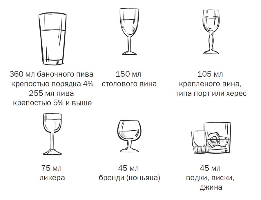 Для начала важно решить, в чем все-таки измеряется доза выпитого алкоголя. На практике это не так-то просто. В незаметную ловушку нередко попадают переводчики медицинских новостей, поражающие нас "безопасными" тремя-четырьмя бокалами пива в день. На Западе, откуда мы привыкли получать данные последних медицинских исследований, существует своя система оценки выпитого алкоголя. Называется дринк. 1 дринк равен 14 граммам (18 мл) чистого 96% этилового спирта. 1 дринк — это 360 мл светлого пива крепостью 4 градуса, 100–150 мл некрепленого вина, 45 мл крепкого 40-градусного напитка. И вот теперь начинается самое интересное — безопасный уровень употребления алкоголя, с точки зрения ВОЗ, составляет 10 л в пересчете на чистый спирт в год для мужчин и 7 л — для женщин. Проведем небольшие расчеты — 10 л это 556 дринков в год, или 1,6 дринков в день, или 11 дринков в неделю. Бутылка водки содержит 16 дринков алкоголя, а разрешенные мужчинам 1,6 дринка в день — это большой бокал достаточно крепко