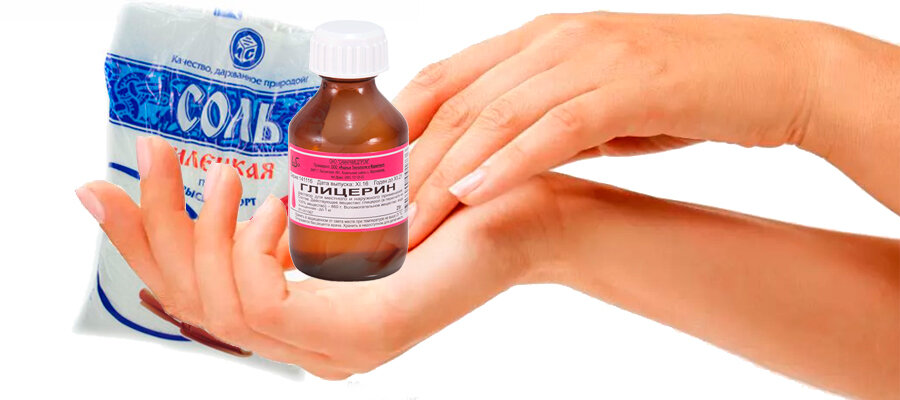 * Смешайте в равных частях теплую воду, глицерин и пищевую (морскую или любую другую) соль мелкого помола. Дайте соли немного раствориться.