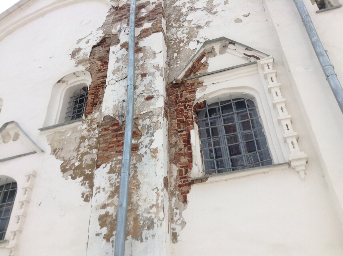 Неприятное происшествие имело место на уникальной улице Иваньской в Великом Новгороде, о которой мы только вчера так увлекательно рассказали. Здесь осыпался наличник церкви Иоанна Предтечи на Опоках. Элемент декора относится к XVII – началу XVIII столетия. Заместитель заведующего отделом реставрации и капитального ремонта Новгородского государственного музея-заповедника Ирина Верман сказала нашему изданию: Осыпание на северном фасаде, к сожалению, продолжается уже несколько лет. Оно связано с оттепелью, когда вода с кровли течёт на фасад. Мы подавали заявку в Минкультуры на субсидии для реставрационных работ – и в 2018 и в 2019 году. Проект сметы на проектно-сметную документацию прошёл государственную экспертизу. Надеемся получить средства в 2020 году. Церковь Иоанна на Опоках была заложена в 1127 году князем Всеволодом Мстиславичем. А в 1130 году была передана князем общине новгородских купцов-вощанников, которая позже стала называться «Ивановское сто». В церкви действовал суд, кото