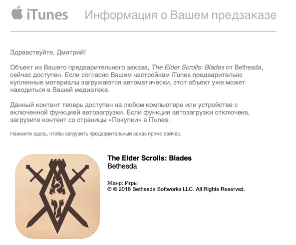 Множество переносов даты релиза, ожидание игры миллионами геймеров… Окончено. Почти.В магазине приложений Apple внезапно появилась The Elder Scrolls: Blades, впервые представленная на E3 2018. Почти сутки игра провела в раннем доступе в Новой Зеландии, а теперь, доступна и в России. Но, с той же оговоркой о раннем релизе, а для начала игры вам понадобиться учетная запись Bethesda. Тот кто игру предзаказал (я это сделал, например) – может искать ее уже на своем смартфоне. Apple разослала письма о том, что игра доступна. Для тех, кто только недавно проснулся от восьмимесячной комы и, возможно, пропустил анонс The Elder Scrolls: Blades, это действительно полная реализация серии Elder Scrolls на мобильных устройствах. Игра заточена под управление одной рукой, что означает большую сфокусирован на линейном исследовании, чем на гигантском открытом мире наподобие Skyrim, но с красивой графикой и действительно интуитивной боевой системой. The Elder Scrolls: Blades определенно выглядит как моб