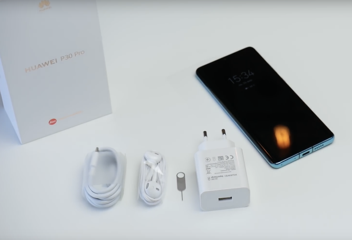 Комплект поставки смартфона включает сам смартфон, USB Type C кабель, скрепку, наушники Type C вместо привычных 3,5 мм, соответственно разъёма 3,5 мм устройство не имеет, и блок быстрой зарядки мощностью 40 Вт с вилкой для евро-розеток.