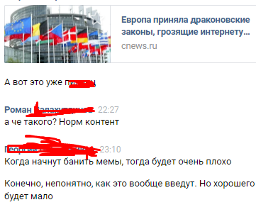 Поправки к закону об авторском праве в Евросоюзе - приняты. Чем это всё грозит? При чём тут дети? Какая, к черту, рыба? Если не в курсе последних событий и споров - вот статья. Не знаю как у вас, но если она меня и коснётся, то я не особо-то и против. Меня больше беспокоят "ноющие дети". Я не привык спрашивать мнения окружающих о том, что мне и так понятно, но к сожалению, в моей профессиональной среде есть люди, которые готовы сделать всё что угодно, чтобы навязать своё мнение. Эх, таким бы людям продавать пылесосы Kirbi или Avon. Но нет, они сидят в чатах и бомбят, когда их не просят. Всё дело в культуре Наверное это наш культурный код - лезть не в свои дела и пытаться выставить себя экспертом там, где ни в чем не разбираешься. Хотя, было бы забавно, если бы Щука, пыталась научить Обезьяну прыгать по лианам. (Пример такой ситуации на скриншотах). Конечно, я не обзываю своего оппонента щукой, не в коем случае, там максимум карасик. Я часто пытаюсь сдержаться, чтобы не лезть в