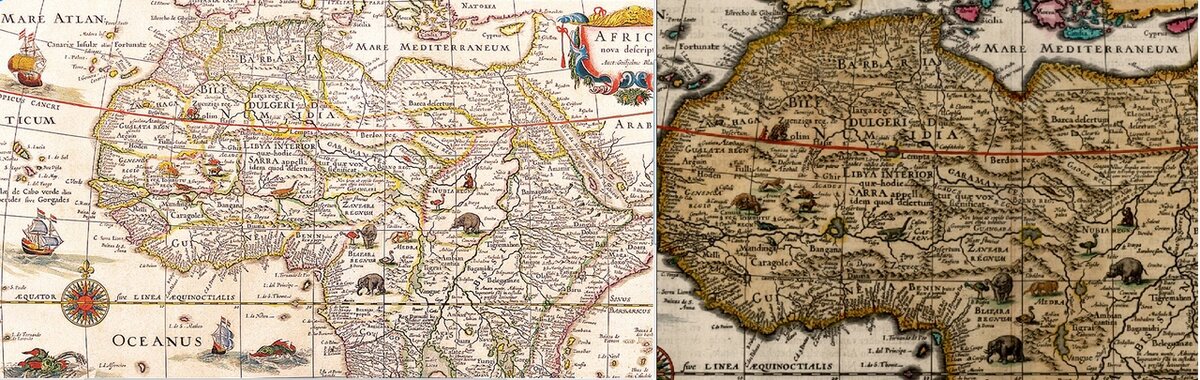 Все средневековые старые карты показывают отнюдь не пустыню. Регион был изучен и указаны множество городов на побережьях и в глубине континента. Если сравнить старые карты, сделанные до начала 18в., то впечатление такое, что регион вполне известный для европейских картографов. Хотя, ученые утверждают, что в пустыню эти территории превратились тысячи лет назад и карты по из логике – ошибочные или поддельные. Этот вывод они делают по одной причине: для них история линейна, в ней нет места глобальным катастрофам, когда погибали целые континенты.