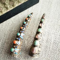 Украшения, использовавшиеся при дворе Китайского императорского двора, были разобраны, что называется «по косточкам» и превращены в подходящие предметы для западного гардероба. Перья чудесных птиц сочетались с драгоценными и полудрагоценными камнями. Резные камешки бирюзы, нефрита, коралла и киновари были установлены в изысканную филигранную оправу для брошей. Ценители китайской ювелирной традиции получили возможность не только увидеть, но и купить некоторые старинные украшения императорской маньчжурской династии Цин (1644-1911гг).