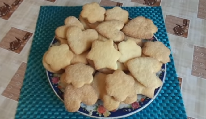 пара яиц, 400 г белоснежной муки, 200 г сливочного масла, разрыхлитель 1 ч. л., стакан сахара. Также заранее приготовьте маленькие формочки для создания печенья в виде звездочек, или если хотите, в виде сердечек.