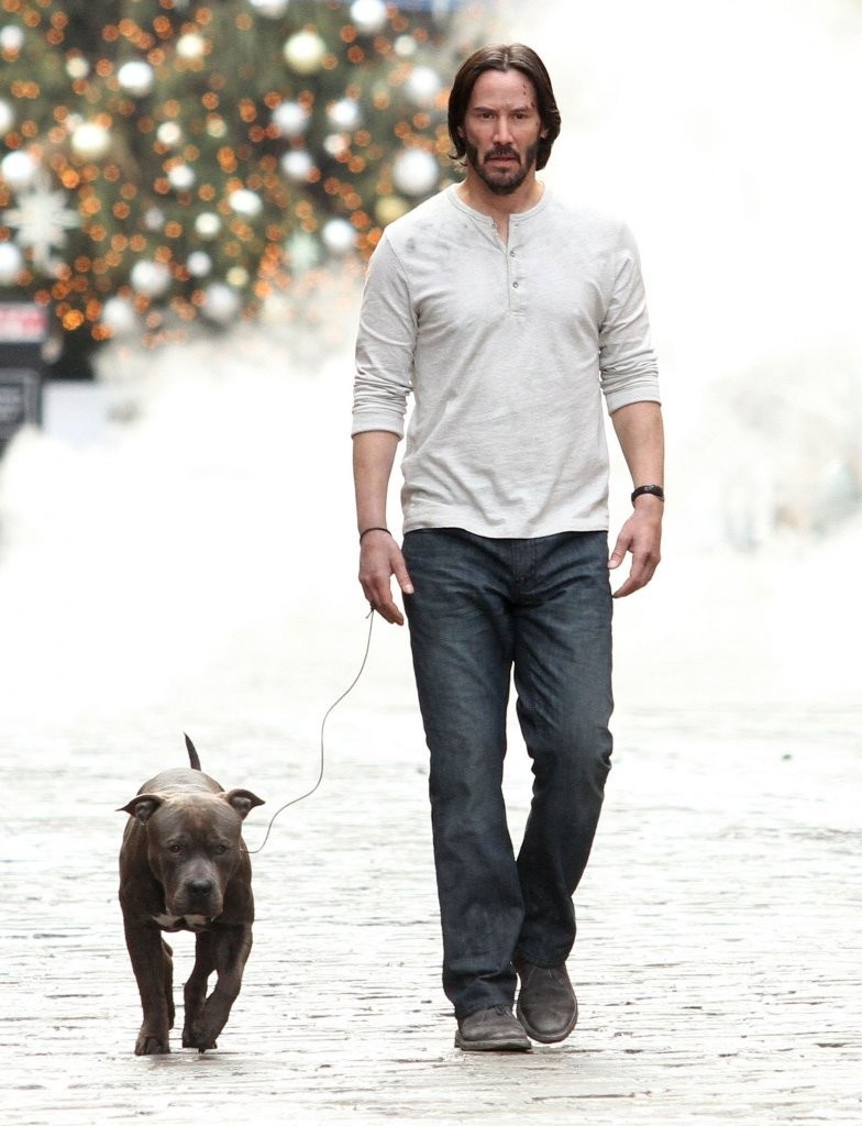 Помните Джон, он же Киану Ривз, берет щенка питбуля? Так вот очень много фотографий со съемок, где Киану снимается с Чачей.