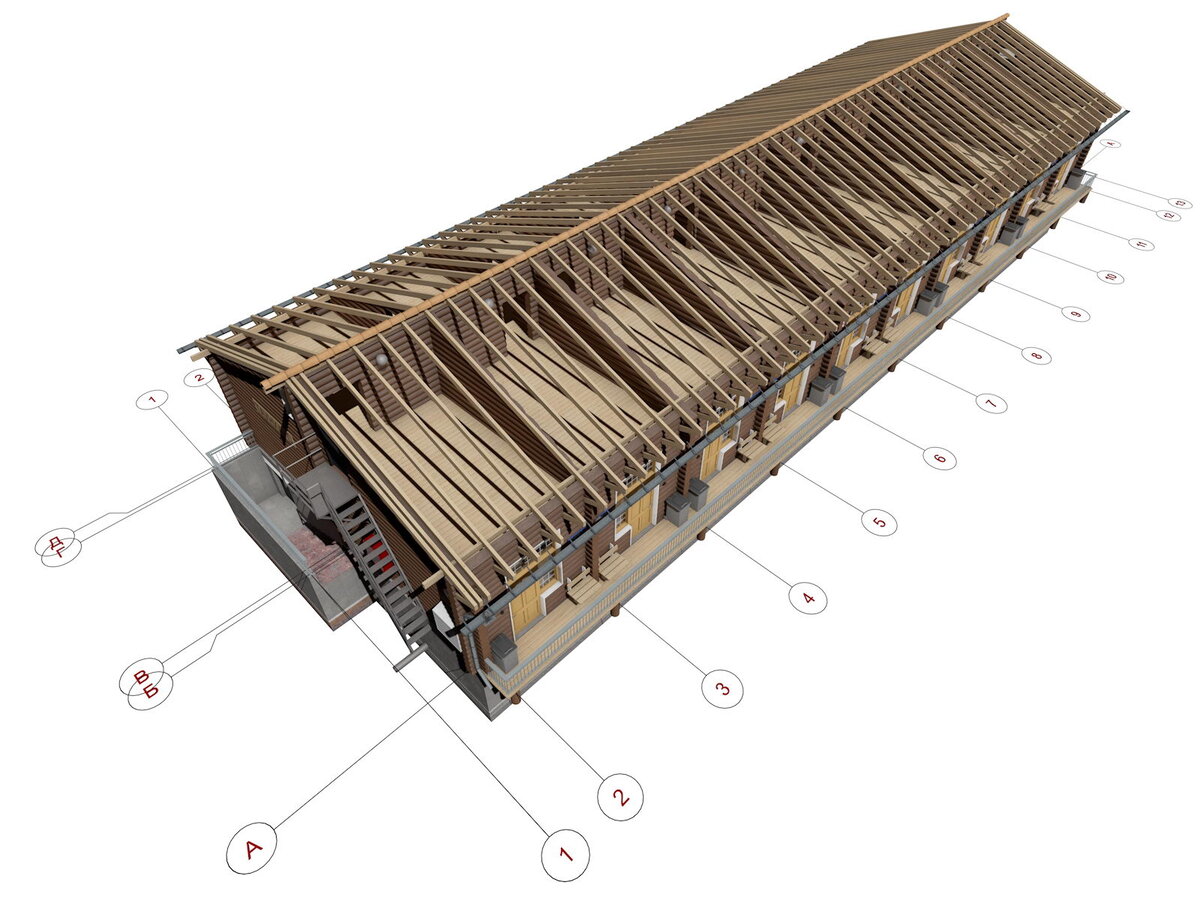 Проект одноэтажного таунхауса из бруса на 10 семей