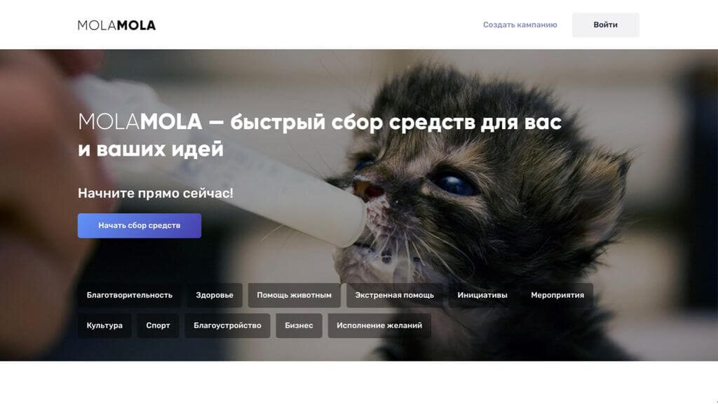 Платформа работает таким образом, что на запуск любой кампании по сбору средств достаточно 15 минут. Запустить кампанию на MolaMola можно в три шага: