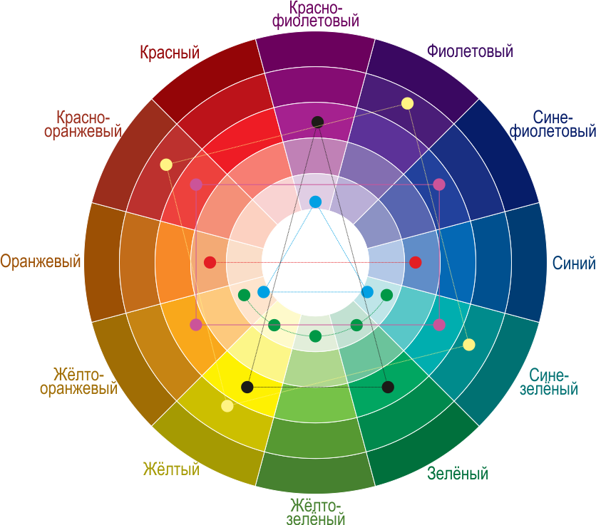 Считается, что основоположником теории цвета был Иоганнес Иттен. Но за 30 лет до него наш соотечественник Михаил Матюшин в 1932 году выпускает “Справочник по цвету. Закономерность изменяемости цветовых сочетаний”, где исследуется данная тема. Кстати, интересный факт: Используя принципы, выведенные Матюшиным, его ученица Елена Станиславовна Хмелевская с группой архитекторов, художников, реставраторов вывела цветовую палитру «Традиционные цвета Санкт-Петербурга», которую используют и по сей день. Итак вернемся к цветовым схемам. В книге "Искусство цвета" (1961 года) Иттен приводит очень интересный эксперимент: человек смотрит некоторое время на красный квадрат, после того как он переводит свой