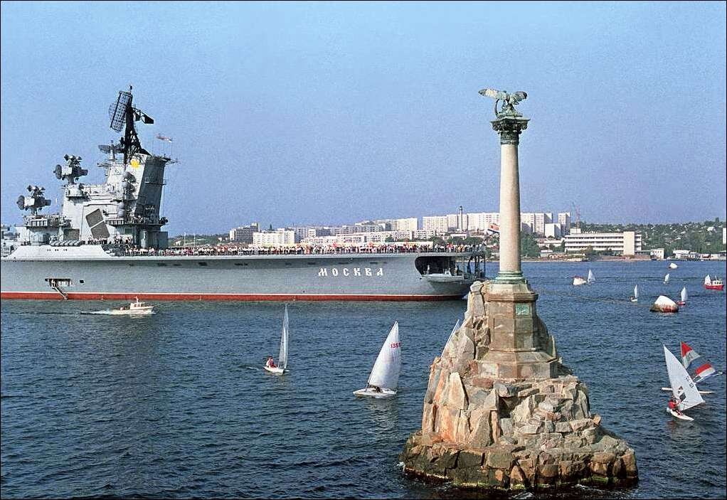 На снимке противолодочный крейсер "Москва", можно сказать, первый наш "авианосец", имевший на борту до 15-ти вертолётов. Он появился на внутреннем рейде Севастополя осенью 1967 года, когда я учился на первом курсе Голландии и из окна казармы или с верхнего плаца его можно было наблюдать каждый день. И каждый день, как известно, на боевых кораблях поутру производится осмотр и проворачивание оружия, технических средств и механизмов. При этом иногда могут происходить совершенно неожиданные вещи вроде несанкционированной стрельбы из артустановок. Что и случилось однажды на "Москве". Я сам слышал разговоры об этом случае в городе. Но тут есть интересный момент. Как известно, историки в своих исследованиях опираются в том числе и на воспоминаниях свидетелей или прямых участников событий. И эти свидетельства зачастую противоречат друг другу :) Так что же там было с "Москвой"? Вот несколько фрагментов из комментариев в этом журнале. ...Это когда ПКР "Москва" при проворачивании механизмов сл
