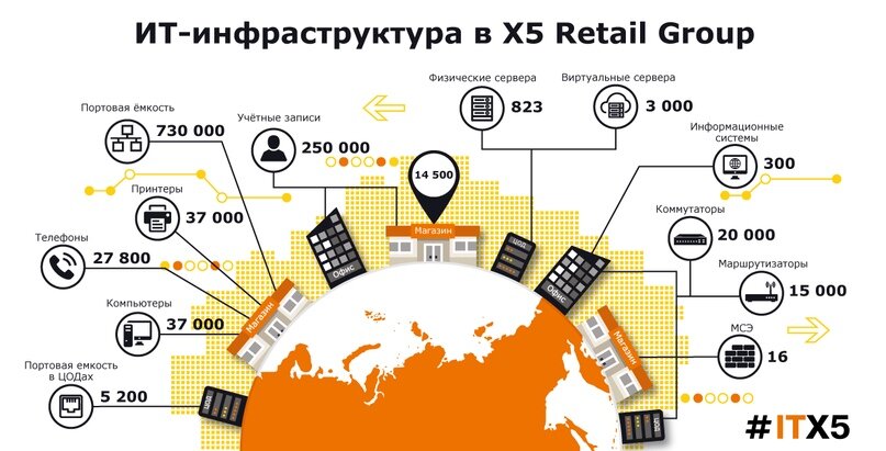 X5 Retail Group разработала и внедрила собственную методологию управления ИТ-мощностями со сценарием предиктивной аналитики. Новый подход, основанный на стандартах ITIL (Information Technology Infrastructure Library), позволил компании реформировать управление ИТ-инфраструктурой, в составе которой более 173 тыс конфигурационных единиц в 3 дата-центрах и 14 500 магазинах. Методология предполагает, что в любой момент ИТ-системы компании обеспечены минимально необходимым, но достаточным объемом ИТ-инфраструктуры, а для новых проектов «под парами» всегда стоит достаточный резерв в оптимальной конфигурации. «Как результат – все расходы на оборудование максимально эффективны и экономически обоснованы, при этом бизнес-подразделения получают доступ к ресурсам для новых проектов за минимальное время, серьезно снижая срок реализации бизнес-проектов. И если раньше проекты ждали свой пул ИТ-мощностей до трех месяцев, то сейчас этот срок уменьшился до пяти дней», - рассказал Фабрисио Гранжа, дирек