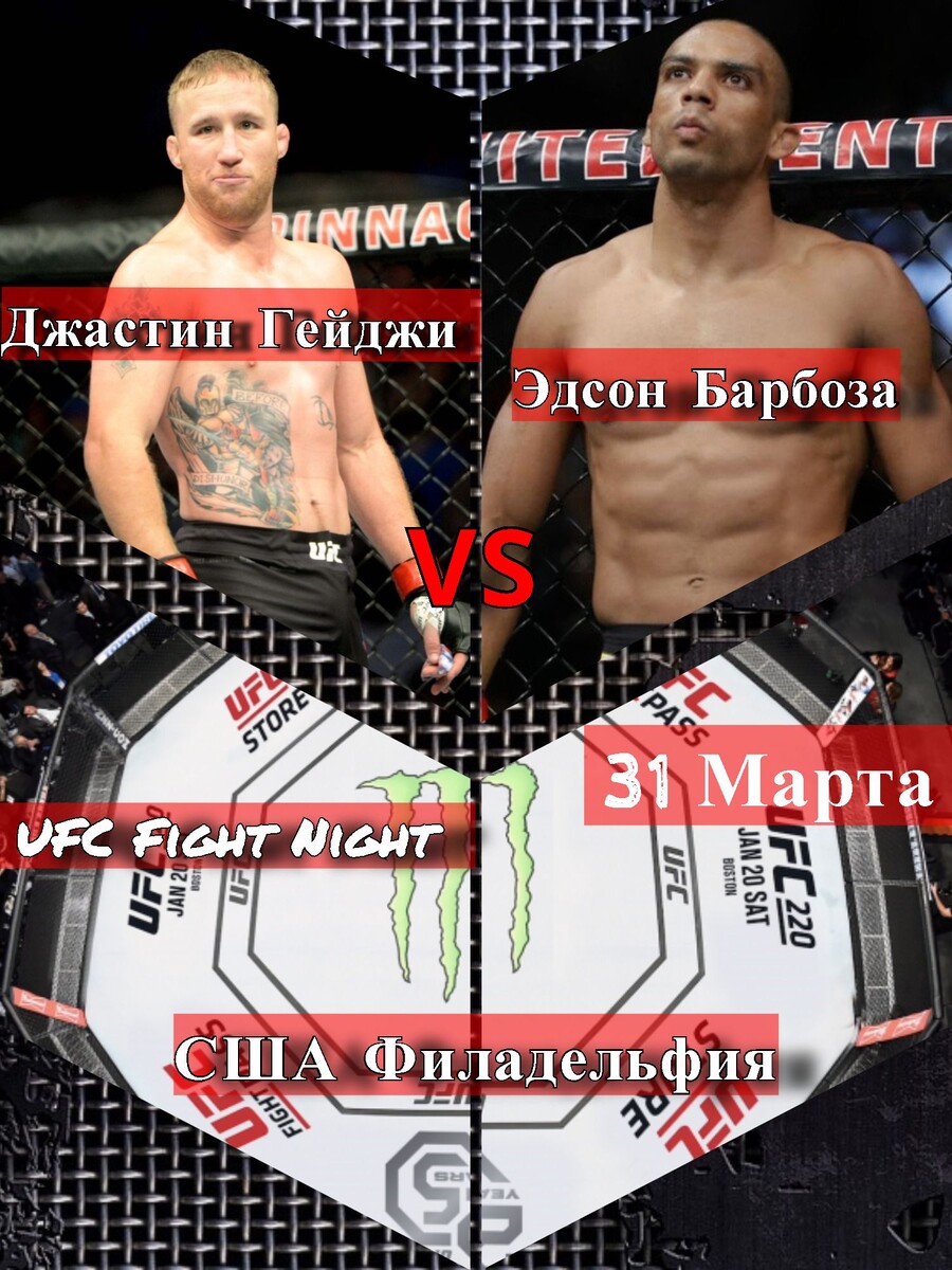 UFC Fight Night: Эдсон Барбоза против Джастина Гэтже в Филадельфии, штат Пенсильвания. Это событие является самым горячим мероприятием в Филадельфии. Главным боем турнира является бой между Эдсоном Барбозой и Джастином Гэтжи, турнир состоится 31 марта в 2:00 по Московскому времени. ПОДПИШИТЕСЬ: ПОМОГИТЕ РАЗВИТИЮ КАНАЛА, ЗАРАНИЕ БОЛЬШОЕ СПАСИБО https://clck.ru/FSWUD Эдсон Барбоза (20-6 ММА, 14-6 UFC) Рост: 5’11 ”Возраст: 33 Вес: 155 фунтов. Достижение: 75 . Последний бой: победа нокаутом над Дэном Хукером (15 декабря 2018 г.). Лагерь: американская топ-команда (Флорида). Главное событие в Филадельфии - это пара двух разрушительных нападающих, которые оба могут наносить большой урон ногами. Ворвавшись в октагон UFC с громовыми ударами ног, Эдсон Барбоза прославился своим первоначальным впечатлениям, после нескольких лет успехов, Барбоза отправился в Нью-Джерси, чтобы тренироваться с Марком Генри, (тренером), который незаметно помог ему улучшить его работу в сфере бокса. + Регион