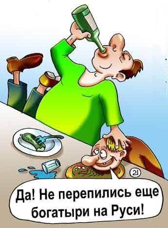 — Все больше не пью: ващще!!! — А что так? — : я в пятницу вернулась с работы: устала как собака. Решила остаться дома: приняла душ, нырнула под одеяло и: выпила целую бутылку коньяку: — Ну и что? — : меня потом в трех ресторанах видели: в том одеяле Мужчина приходит домой и с порога зовет тещу: — Налейте мне, мама, водочки 50 граммов. — Ты что, охренел совсем?! — А я за это 500 рублей дам! Теща согласилась и налила водки. — А налейте мне, мама, еще 50... — Ты переходишь все границы! — Вот еще тыща... Теща взяла деньги и налила водки. — А давайте, мама, выпьем вместе. Я еще тыщу дам! Теща согласилась и выпила водки. — А давайте, я вам в глаз дам! — Ты что, совсем ошалел?! ! Да я тебе! . . — А я за это три тыщи дам! Теща согласилась, и мужчина ка-ак вмазал от души. Теща — с копыт. Тут раздается звонок, мужчина берет трубку, а там жена: — Дорогой, ты передал маме пенсию? — В процессе, дорогая, в процессе... – Что такое пьянка по-русски? – Ящик водки, ящик пива, ко