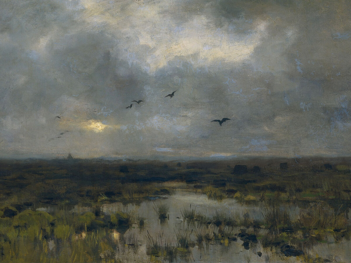 Болота, которое успело всосать и похоронить в себе разной мелкой живности - не счесть. Случайно затесавшихся пёсьих и копытных - с десяток. И даже, пару грибников. Уже не безграничная трясина, но ещё и не поля клюквенные. Перемешанные с кривыми чахлыми осинками и зарослями багульника. Что-то промежуточное, меж миров.