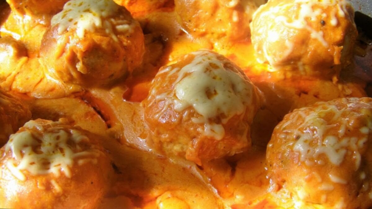 Тефтели с зеленью и подливкой из сметаны и томатной пасты