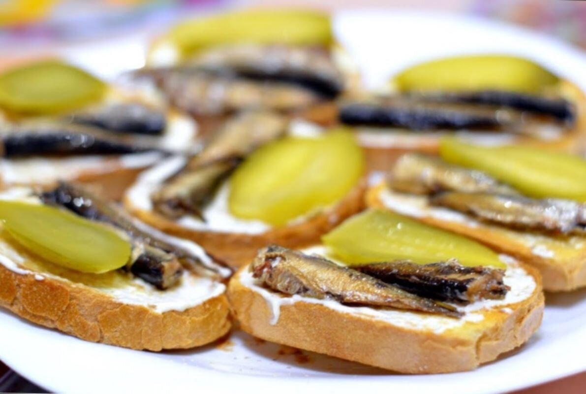 Бутерброды со шпротами - 5 способов приготовления Бутерброды со шпротами - великолерный способ вкусно накормить народ. Готовить их очень быстро и мы собрали для Вас целых 5 вариантов приготовления бутербродов со шпротами. Выбирайте любой. Ингредиенты: 1 штука банка шпрот 3 шт. яйца 1 пучок зеленый лук по вкусу укоп и петрушка 7-9 кусочков хлеб по вкусу майонез для украшения огурцы СПОСОБ ПРИГОТОВЛЕНИЯ: Рецепт №1. Бутерброды со шпротами с яйцом, зеленью и майонезом Ингредиенты: 1 баночка шпрот, 3 яйца, зелень (зеленый лук, укроп и петрушка), майонез - 1 столовая ложка, 7-9 ломтиков хлеба. Яйца отварить в крутую и натереть на терке, посолить. Зелень измельчить. Со шпрот слить масло. Смешать в мисочке рыбу (размять ее вилкой), яйца, зелень, майонез. Ломтики хлеба выложить на противень, сбрызнуть оливковым маслом и подержать в духовке несколько минут. Они должны быть чуть хрустящими и поджаренными снаружи, но мягкими внутри. Выложить шпротную массу на кусочки хлеба. Рецепт №2. Буте