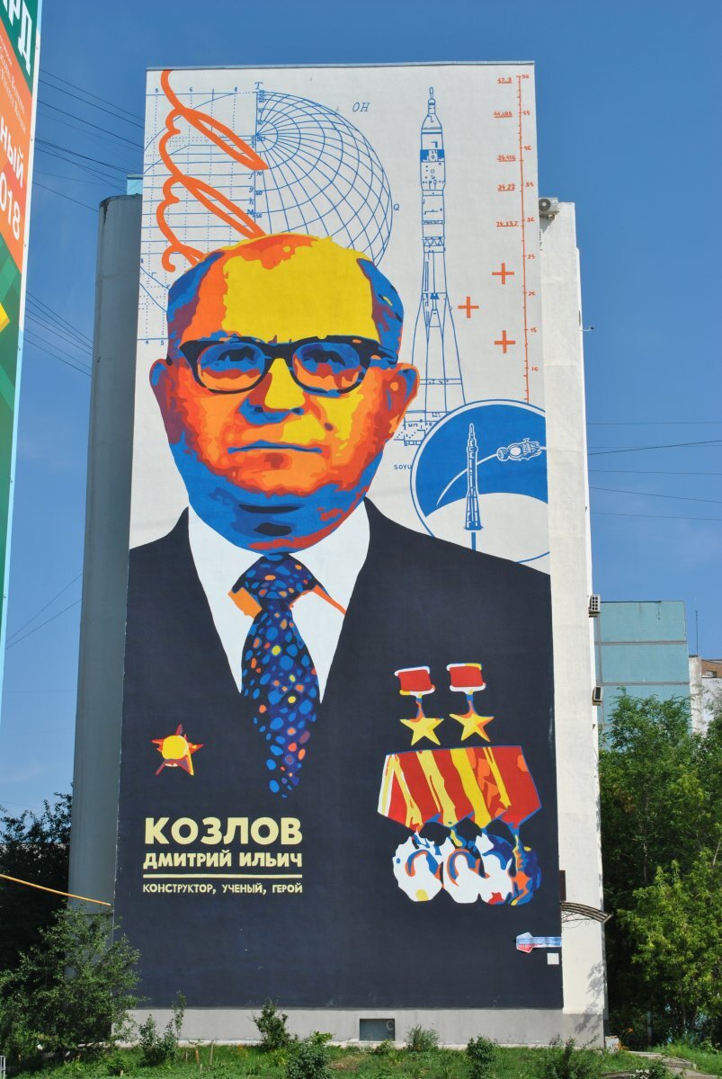 Дважды Герой Социалистического Труда, генеральный конструктор Центрального специализированного конструкторского бюро («ЦСКБ-Прогресс»), член-корреспондент Российской академии наук (1991; член-корреспондент АН СССР с 1984 года). Жители Самары решили увековечить почетного ученого, генконструктора Самарского ЦСКБ "Прогресс" и дважды Героя Соцтруда Дмитрия Ильича Козлова. Огромный портрет советского и российского конструктора ракетно-космической техники украсил дом № 267 на улице Ново-Вокзальной в Самаре. Рисунок высотой 28 метров наносили стрит-арт художники из Москвы — команда ZUKCLUB. Изображение создавали 5 дней. .