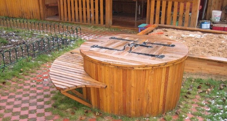 Самодельная деревянная колодезная крышка.