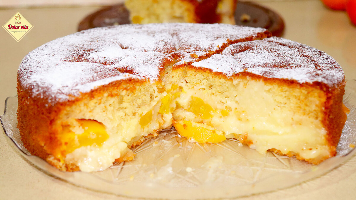 Сахар 1стакан (160гр) Ванилин 1 пачка Масло сливочное 100гр. Соль 1 щепотка Сметана 9% 200гр. Разрыхлитель 1 пачка Растительное масло 100мл. Мука 450гр. Персики консервированные 500гр. ________________________