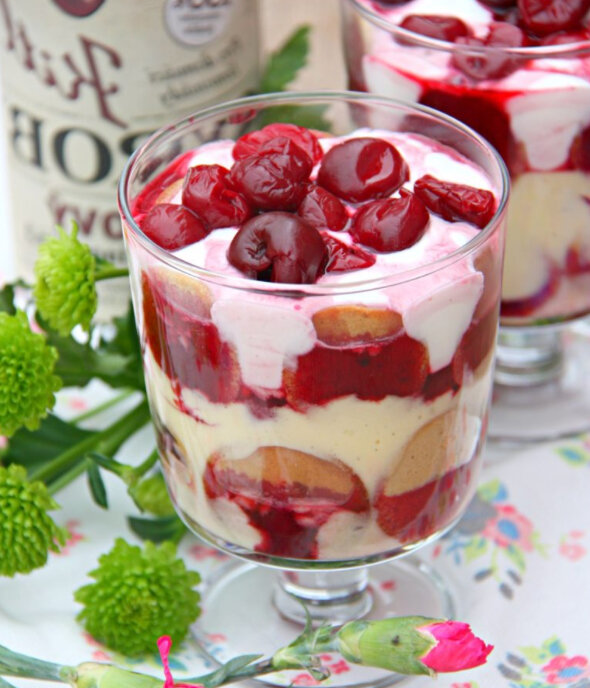 Trifle - это британский десерт, состоящий из печенья, фруктов и сливок из который обычно делается в большой емкости, а затем подается отдельными порциями на тарелку. По моему мнению, этот рецепт украсит любой ужин, а также у меня есть для вас алкогольная и безалкогольная версия. Примерно на 4 порции: