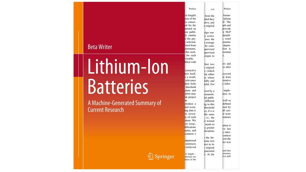 Издательство Spring Research на днях опубликовало первую книгу, написанную не человеком. Алгоритм машина был разработан исследователями ИИ в Лаборатории прикладной вычислительной лингвистики (ACoLi) Университета Гете во Франкфурте (Германия). Книга получила название: Литий-ионные аккумуляторы, следовательно, она не преследует цель затмить произведения таких авторов, как Джон Гришем или Дж.К. Роулинг. Книга не содержит интересных персонажей, живого диалога или захватывающего сюжета. Она представляет собой обширную информацию, касаемо исследований в области литий-ионных батарей. За последние три года вышло свыше 53 000 статей на эту тему. Основываясь на запрашиваемом предмете, алгоритм использует машинное обучение для анализа всех публикаций, и после сортирует только те, которые актуальны. Затем он анализирует, конденсирует и организует эти предварительно одобренные, рецензируемые публикации из онлайн-базы данных Springer Nature в последовательные главы и разделы, каждый из которых