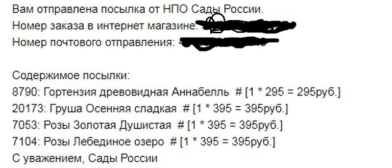 Пришла посылка быстро, менее чем через две недели. Непонятно почему так упаковали конечно, без заполнителя внутреннего пространства ящика. Ведь могло сломаться же все там. Но вроде все дошло хорошо. Гортензия и груша выглядят... маленькими? Не, манюсенькими, хлипкими и... Ну ладно, будем холить и лелеять. Корневая система облеплена у роз влажными опилками и плотно обернута пленкой. Гортензия в пластиковом горшочке, с влажными опилками же. Корни груши обернуты мхом сфагнумом и так же пленкой.
