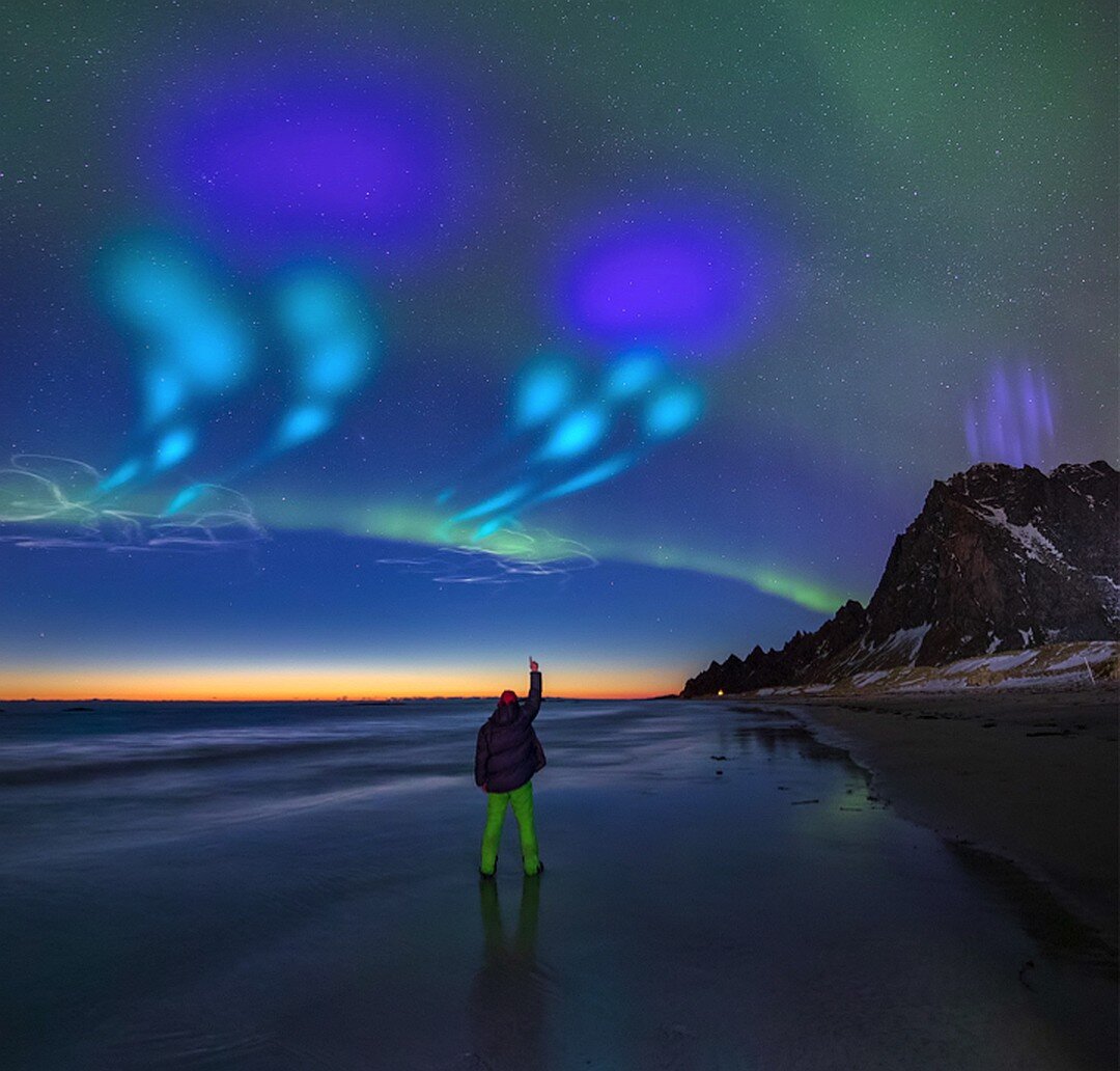 Ракеты были запущены 5 апреля из космического центра Андойя (Andoya Space Center in Norway) в рамках эксперимента AZURE (The Auroral Zone Upwelling Rocket Experiment). Свидетелями данного зрелища удалось сфотографировать «инопланетян», которые как будто зависли в небе. Снимки и видео разместил портал SpaceWeather.com. По плану ракет-распылителей их должно быть восемь. Не исключено, что развлечение может повторится. "Инопланетяне" на своих голубых шарах прилетят снова.