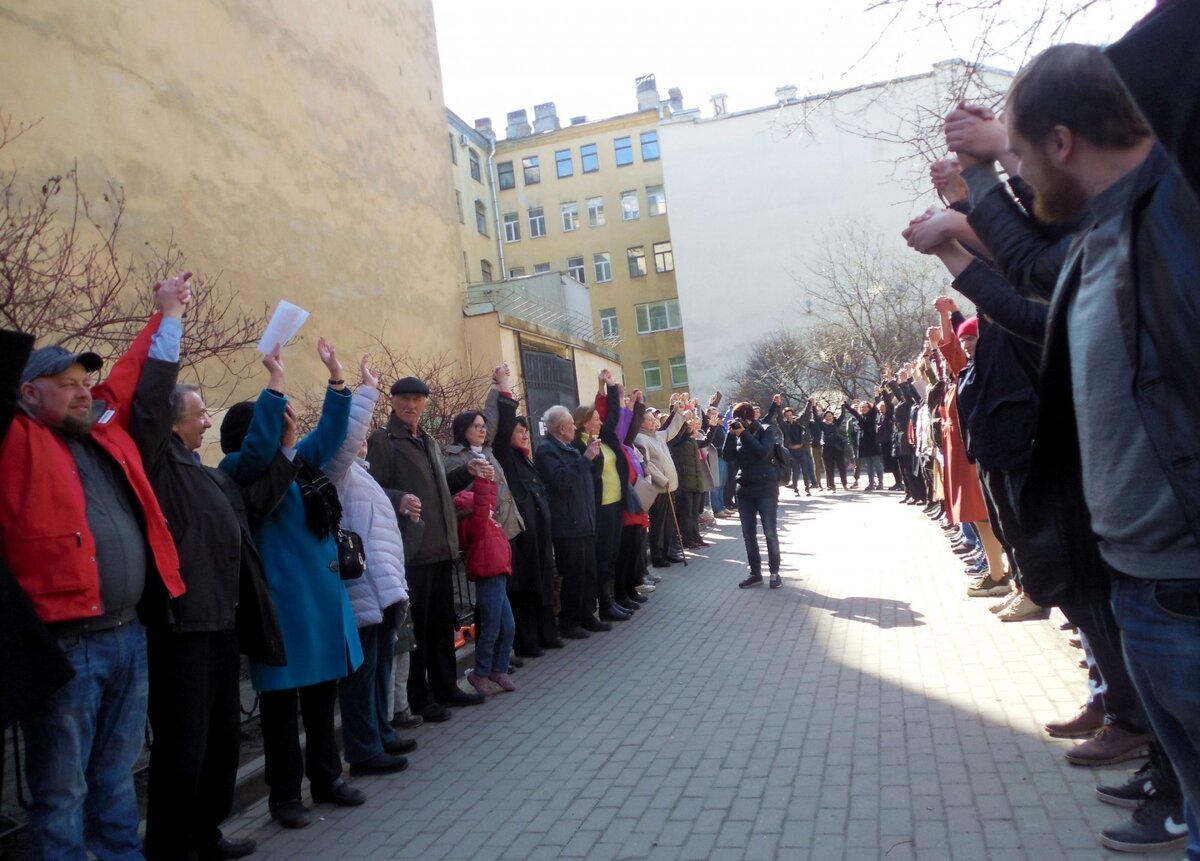В воскресенье, 7 апреля, петербуржцы окружили живым щитом сквер в Кузнечном переулке в Центральном районе. В акции, по подсчетам организаторов, поучаствовали 250 человек.