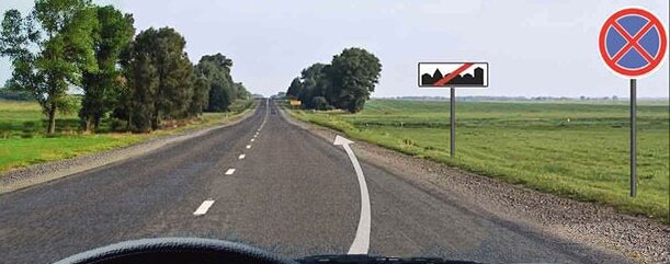Давайте разбираться. Мы хотим поставить автомобиль на стоянку в указанном месте. Но тут стоит знак "Остановка запрещена", который запрещает нам это сделать. Чуть дальше стоит знак "Конец населенного пункта". Так как действия знака "Остановка запрещена" действует только до конца населенного пункта, значит мы можем поставить автомобиль настоянку в указанном месте.