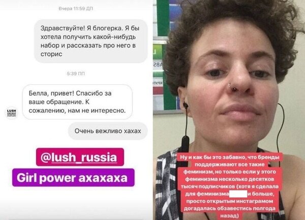 Сообщение о том, что косметический бренд теперь будет общаться с клиентами только на своём сайте, появилось на его официальной англоязычной странице в Instagram. Как рассказала «Говорит Москва» pr-директор российского представительства LUSH Мария Сафронова, решение коллег из головного офиса не связано со скандалом с блогером Беллой Рапопорт. Сафронова также уточнила, что работа русскоязычных аккаунтов LUSH в соцсетях продолжится. Активистка фем-движения Белла Рапопорт подверглась насмешкам пользователей после того, как опубликовала переписку с smm-менеджером LUSH, в которой попросила бесплатно предоставить ей набор косметики. «Здравствуйте. Я блогерка. Я бы хотела получить какой-нибудь набор и рассказать о нём в сторис», - написала Рапопорт. Представитель бренда ответил: «Спасибо за ваше обращение. К сожалению, нам не интересно». Пользователи завалили аккаунты феминистки спамом и она их закрыла. Ответ представителя Lush Рапопорт назвала «хамским». Бренд-менеджер компании Варвара Афан