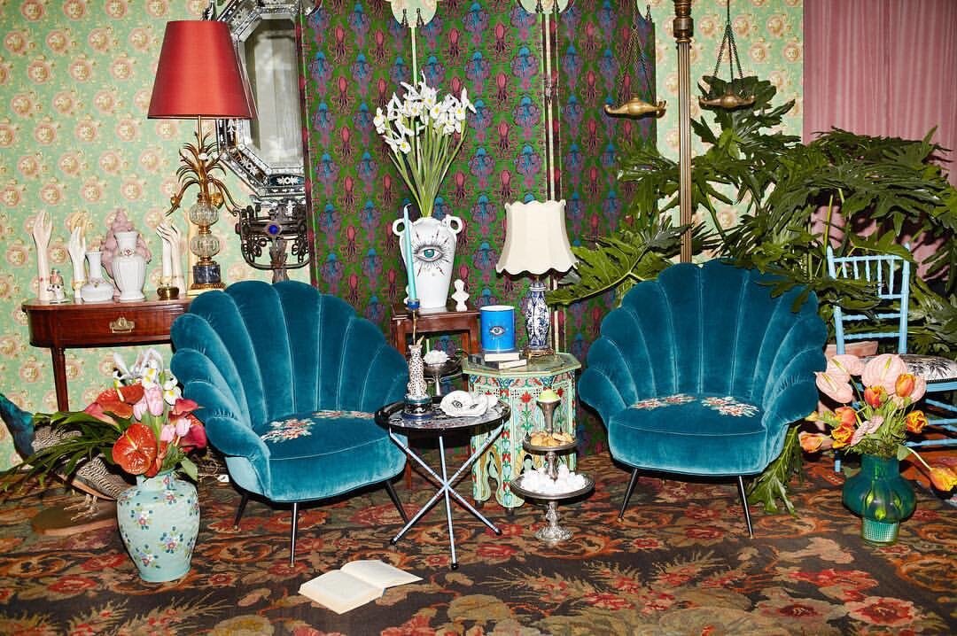 На двух этажах площадью 250 кв. метров можно найти все, от фарфоровых статуэток до ковров, шелковых обоев и даже межкомнатных дверей. Хит обзоров – кресло-ракушка, будто из голливудского кино 1950-х. Но если перевозить мебель из Италии не хочется, оформить дом в стиле Gucci вы все равно сможете – в продаже есть множество негабаритных предметов декора: подушки в виде кошек и пчел, пепельницы, яркие вазы, расписная посуда, подставки для украшений, причудливые подсвечники, покрывала с логотипом и др. Все с узнаваемыми принтами в эстетике бренда. Если будете в Милане, непременно загляните, пусть и не планировали покупки – в этом стильном пространстве можно просто с интересом побродить и сделать несколько портретных фото в модном Gucci–интерьере. Бутик будет работать до июня, затем коллекцию декора распределят по постоянным магазинам бренда.