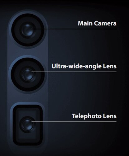 Фоточасть смартфона состоит из трех камер: «обычной», ультраширокой и телеобъектива.