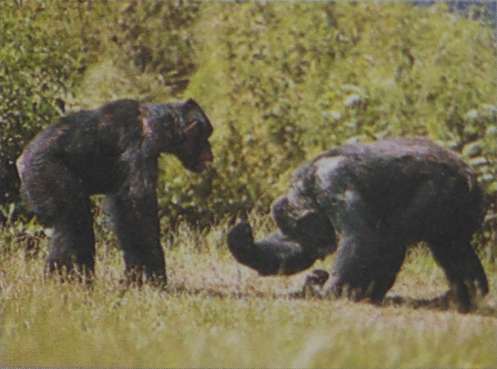 Обыкновенный шимпанзе обладает, развитой мимической лицевой мускулатурой, которая позволяет использовать гримасы. Контактируя только между собой, примат издает более 30 всевозможных звуков. Он использует также мимику, жестикуляцию руками и принимает разнообразные позы. Обыкновенный шимпанзе – коллективная обезьяна. Они живут только малочисленными группами. Структура и количество животных такого стада нестабильна. Может варьироваться от двух до двадцати пяти особей, бывает и достигает 40. Количество обезьян в семьях постоянно меняется. Стадо может состоять не только из одной пары с малышами. Иногда в них находятся только самцы; семьи, состоящие из матери с погодками или же смешанные группы. В коллективе между обыкновенными шимпанзе нет иерархии. Приспособления шимпанзе В своем ареале обитания и в зоопарках примат активно использует подручные материалы, для удовлетворения своих потребностей. Это существенно отличает их от других млекопитающих. Причем взрослые шимпанзе используют навык