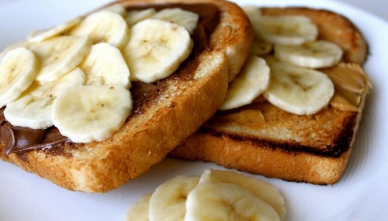 Хлеб Арахисовая паста Банан Гранола Приготовление:
