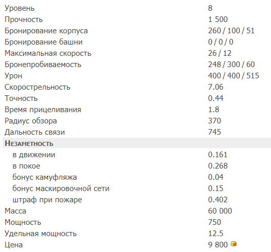 Сразу отметим, что машина довольно интересная. В отличие от многих ПТ, техника ориентирована на ближний бой, поэтому вместе с тяжами продавливать направление или засесть в глухой обороне, ну как по аналогии с Т110Е3. Уточним, что радостно потирать ручки пока не стоит: машина пока появится на игровых кластерах Европы и Америки, однако, вполне возможно, что в дальнейшем техника будет общедоступной. Пока этого не произошло, познакомимся с танком поближе, сделав небольшой TS-5 гайд. Начнём наш обзор с изучения основных параметров. Итак, у ПТ-шки вполне стандартный для 8го уровня запас прочности в 1 500 единиц, и непримечательная дальнозоркость в 370 метров. Вес машины 60 тонн, двигается эта стальная туша благодаря 750-сильныму дизельному движку. Вполне естественно, что машина не может похвастаться высокими скоростными показателями: ПТ максимально может разогнаться только до 26 км/час по хорошей дороге. Сразу уточним, что для этого класса техники, скорость далеко не главное качество,