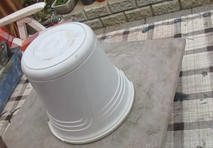 Хотели бы вы, чтобы на вашем участке появился красивый декоративный горшок для растений? Обычно большие горшки стоят достаточно дорого. Предлагаем вам сделать такой своими руками. Вам не потребуются сложные материалы. Достаточно будет того, что есть под рукой у хорошей хозяйки на даче. Вам нужно приготовить Пластмассовое ведро (можно битое или со сколами) Несколько ненужных тряпочек или полотенец. Цемент Вода. 3-4 пластиковые крышки Для начала вам нужно снять ручки с вашего пластмассового ведра. Они вам не понадобятся. При помощи тонкой наждачной бумаги подготовьте пластиковую поверхность ведра. Для этого пройдитесь наждачкой по всей наружной части ведра, делая его поверхность шершавой. Приготовьте отрезки такни. В этом мастер классе использованы куски хлопчатобумажной материи. Вы тоже можете нарезать на полоски ненужную простынь или полотенце. Только следите за тем, чтобы ширина кусков была не меньше 10 см. Замесите цементный раствор согласно инструкции на упаковке. У вас должен полу