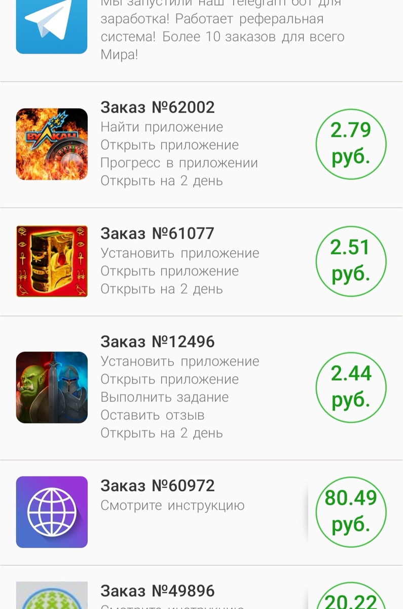 Ещё одной разновидность заработка в сети является скачивание приложений. В сети можно найти много подобных сервисов, например, AppCent или AdvertApp. Для заработка необходимо скачать мобильное приложение, в котором будут появляться задания, за выполнение, которых и будет производится оплата. В основном встречаются задания найти приложение в Play маркете по определенной фразе и скачать его, после этого открыть на 30 секунд и повторять подобные открытия несколько раз. Так же можно встретить задания оставить отзыв о приложении, включая в него определеную фразу и поставить оценку. Деньги платит разработчик или рекламолатель через специальные сервисы. У такого, на первый взгляд лёгкого заработка есть свои плюсы и минусы: - необходимо иметь много памяти на мобильном устройстве для установки приложений; - не очень много заданий; - для заработка не требуется никаких вложений, все приложения бесплатны; - приложения, которые предлагают для скачивания легальный и не содержат никаких вирусов; - за