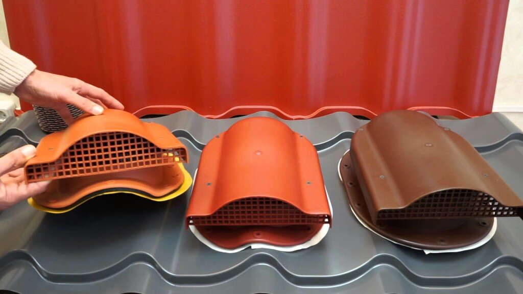 При уклоне ската более 20º, вентиляционный зазор должен составлять как минимум 50 мм., при уклоне кровли до 20º, зазор между основанием и гидроизоляцией должен быть больше на 80 мм. Вентиляционные отверстия предусматривают также между элементами стропильной системы. Элементы вытяжки для кровли могут быть разными, чаще всего используют коньковый аэратор, пищевую решетку. Если возможности установить коньковый аэратор нет, используют точечные вентиляционные выходы.