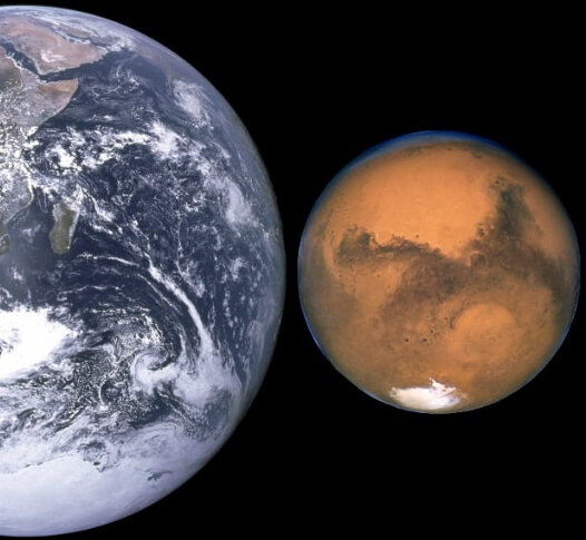 Да, эти планеты имеют между собой много различий, но на самом деле существуют вещи, которые делают их немного похожими. Наша планета больше Марса и по размерам и по весу, но например ландшафт ну очень схож с красной планетой. Вы знали, что на Марсе бывают снегопады? 2012 год запомнился тем, что были зафиксированы осадки в виде снега, которые состояли из двуокиси углерода. Также существуют и другие схожести у этих двух планет, о которых мы расскажем вам прямо сейчас. Четыре сезона На марсе существуют времена года, их четыре, но они немного отличаются от наших. Год на Марсе длится 687 земных дней, когда у нас только 365 дней. Поэтому и каждое время года длится немного больше, чем на земле. Зима длится 4 месяца, и это только самая низкая продолжительность этого времени года на марсе. Весна тянется 7 месяцев, а лето 6, но очень холодных месяцев, так как температура держится примерно на уровне -20° С. Удивительная вещь в том, что летом в южном полушарии температура может достигать 30° С.